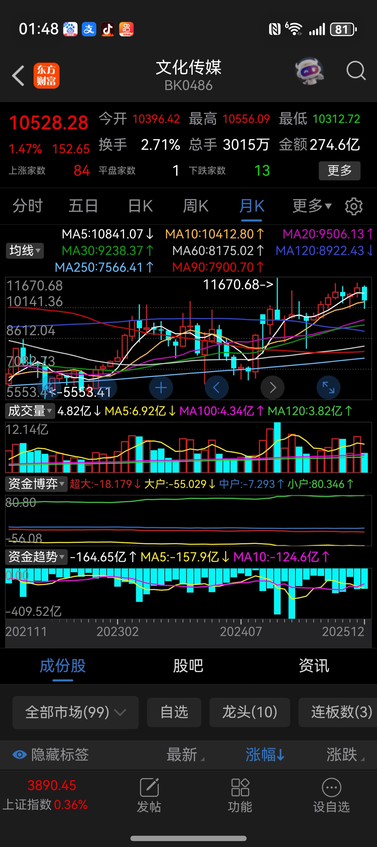 $城市传媒(SH600229)$ 从传媒板块指数来看,指数从5553摸到近期最高位11670,涨幅双倍,而城市传媒还在底部区域横盘震荡,洗盘结束后,有望迎来一波较大的补涨行情。