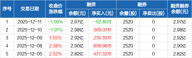 沧州大化:融资净偿还92.8万元,融资余额2.97亿元(12-11)