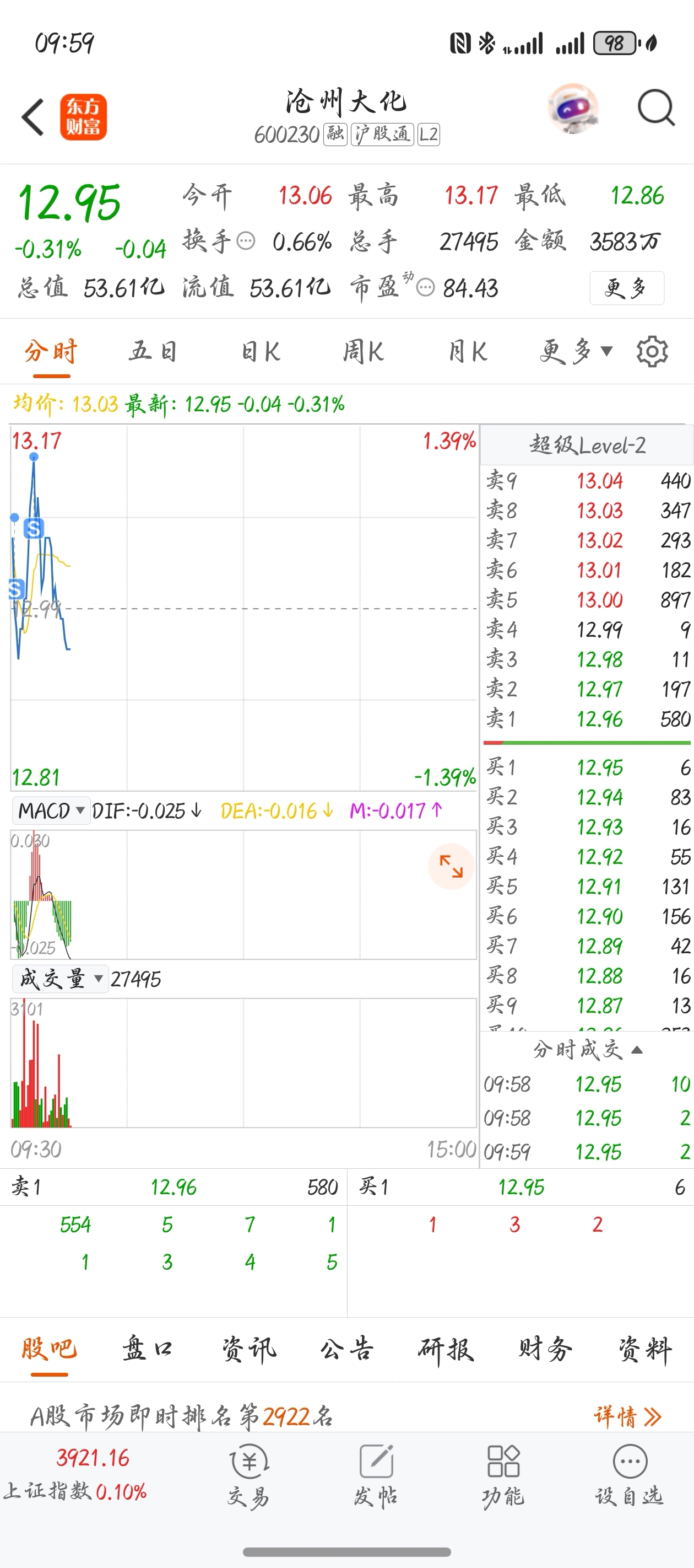 $沧州大化(SH600230)$ 感谢主力今天还给了个红盘出的机会