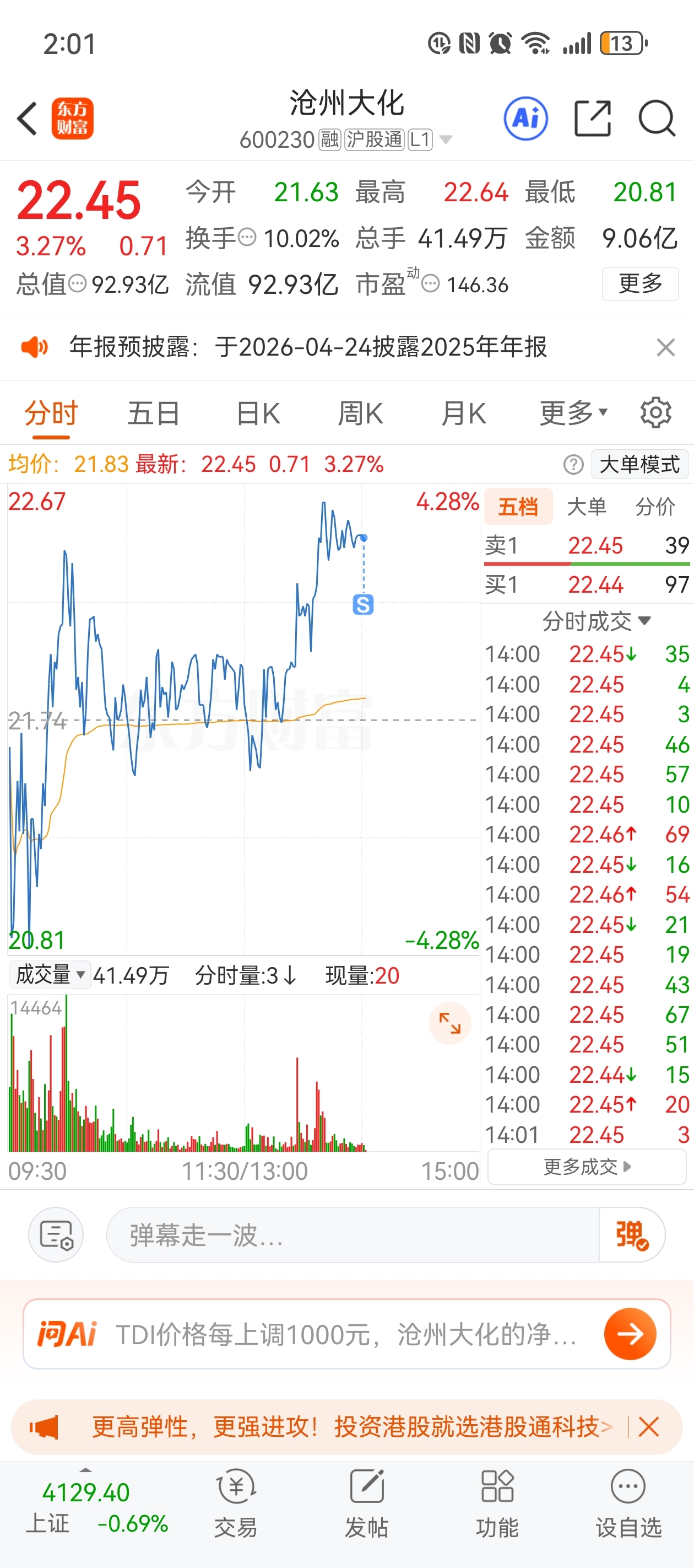$沧州大化(SH600230)$ 走了,留下的兄弟发财