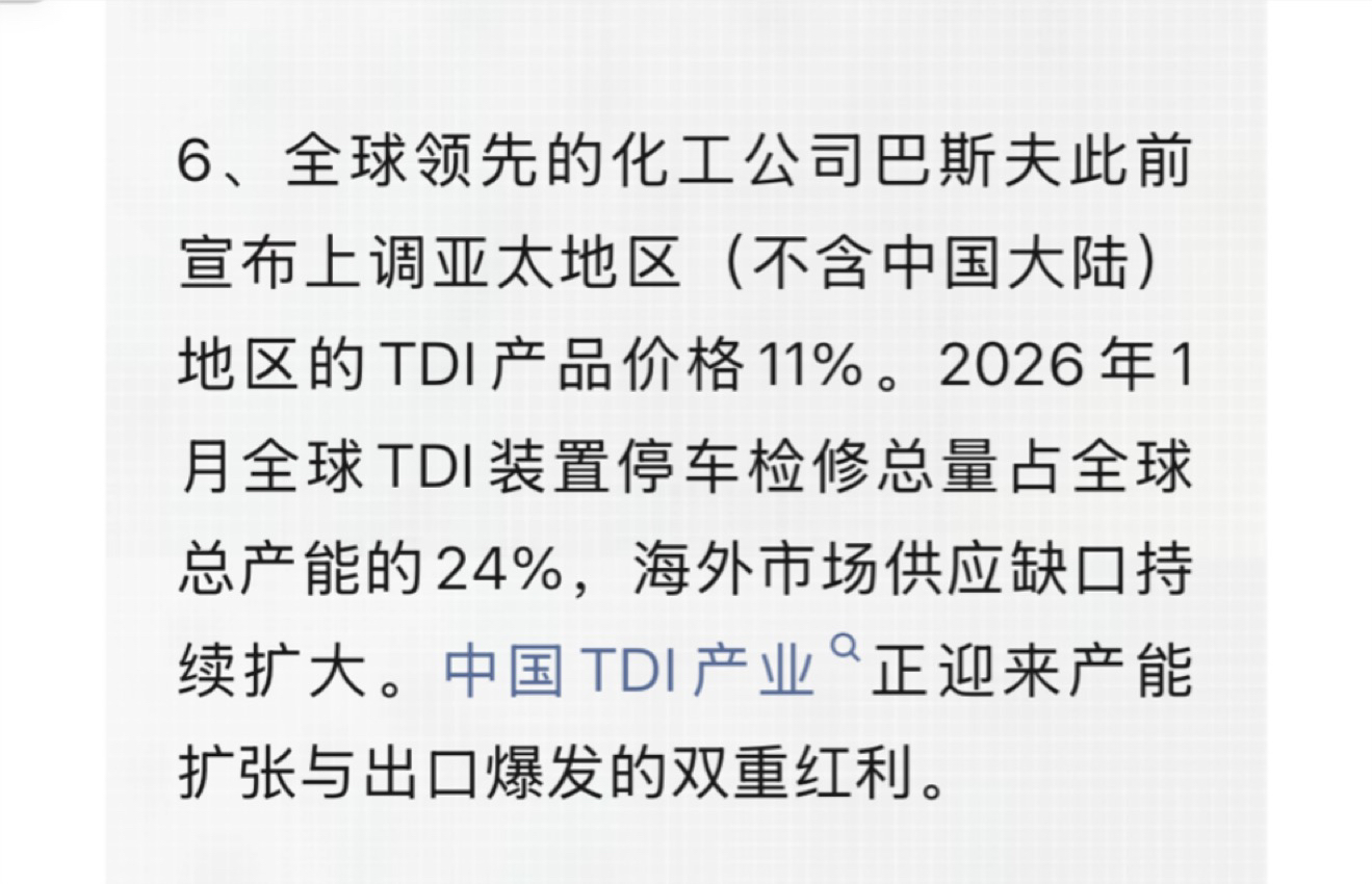 $沧州大化(SH600230)$ TDI 有梦你就来