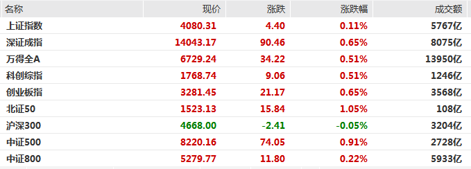 截至午盘,沪指涨0.11%,深成指涨0.65%,创业板指涨0.65%。
