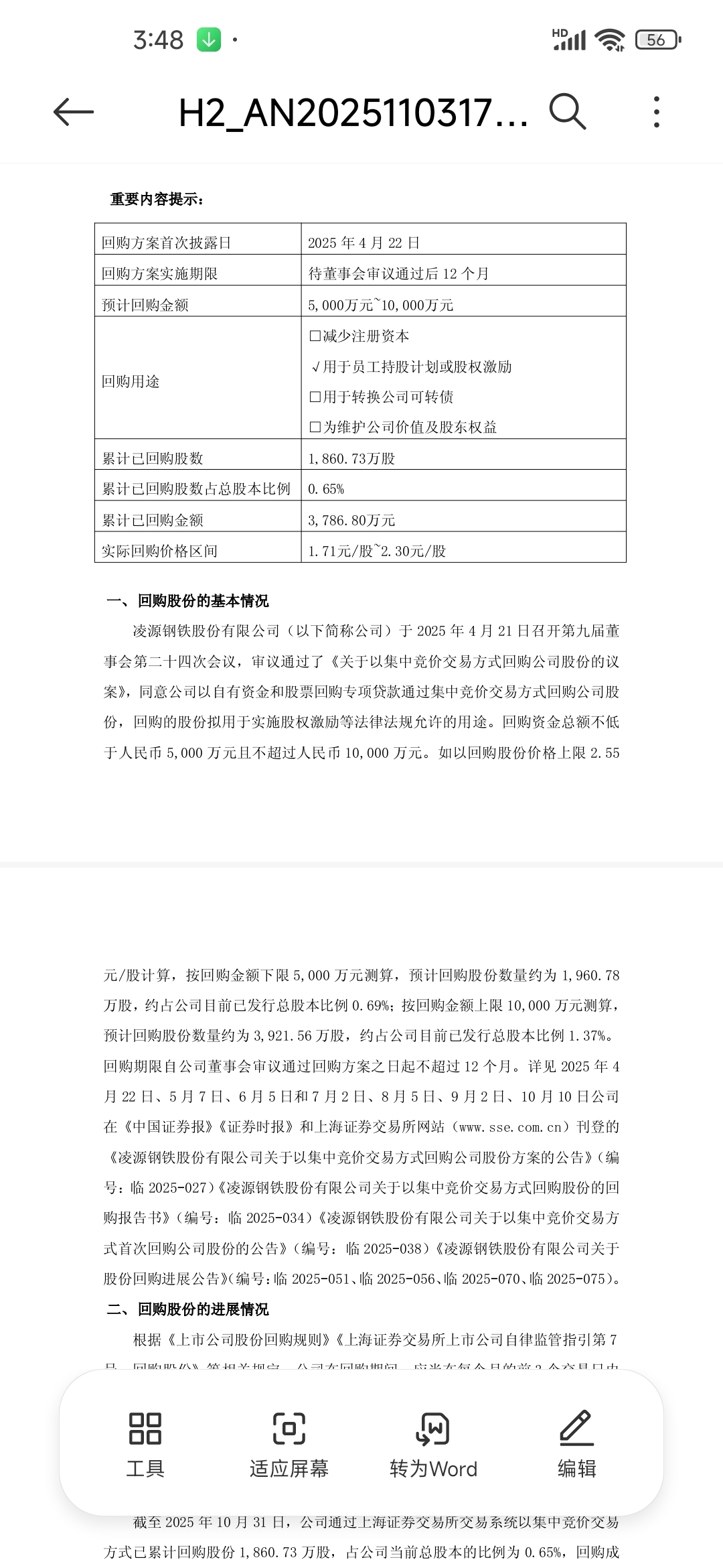 $凌钢股份(SH600231)$ 今年的回购完成了吗?