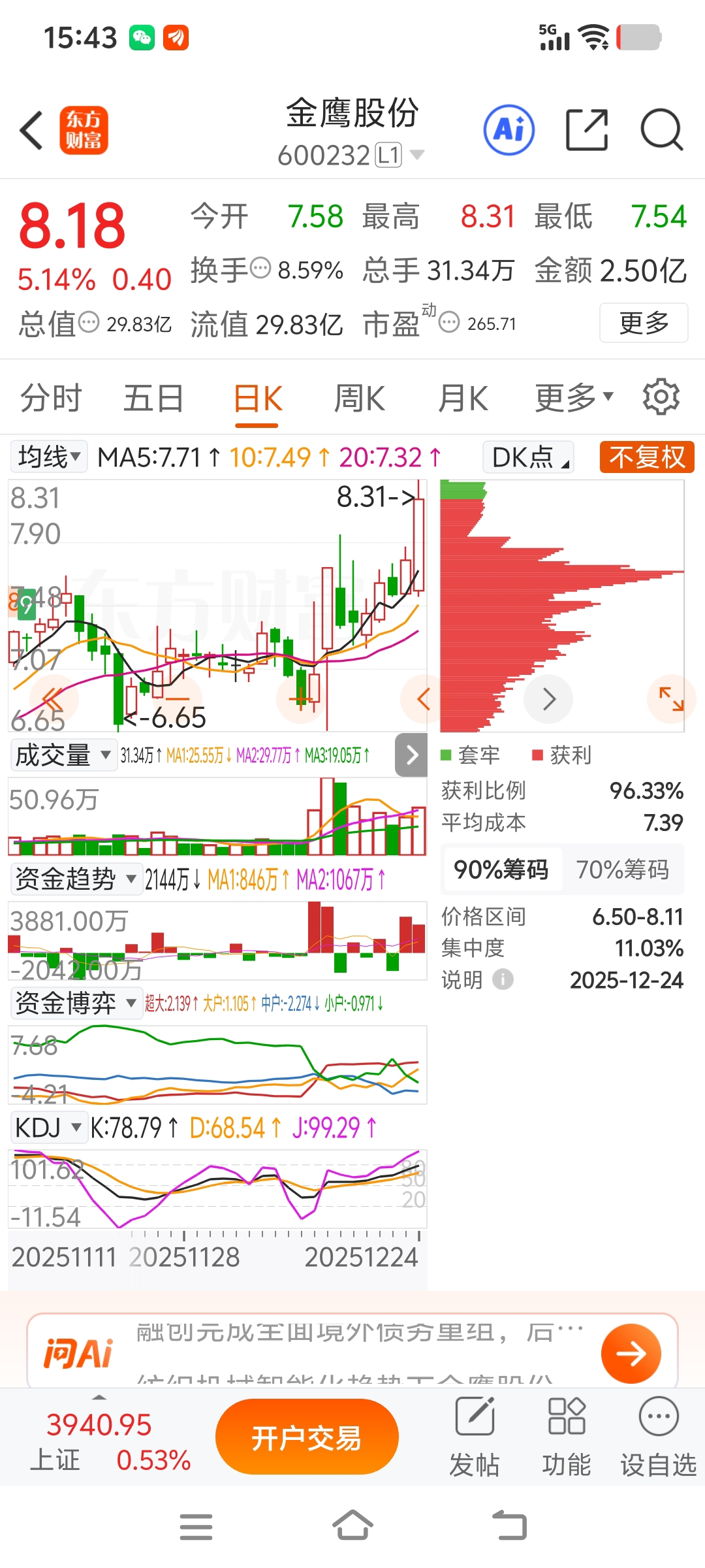 $金鹰股份(SH600232)$ 昨天买入,今天未到目标价位,未出!