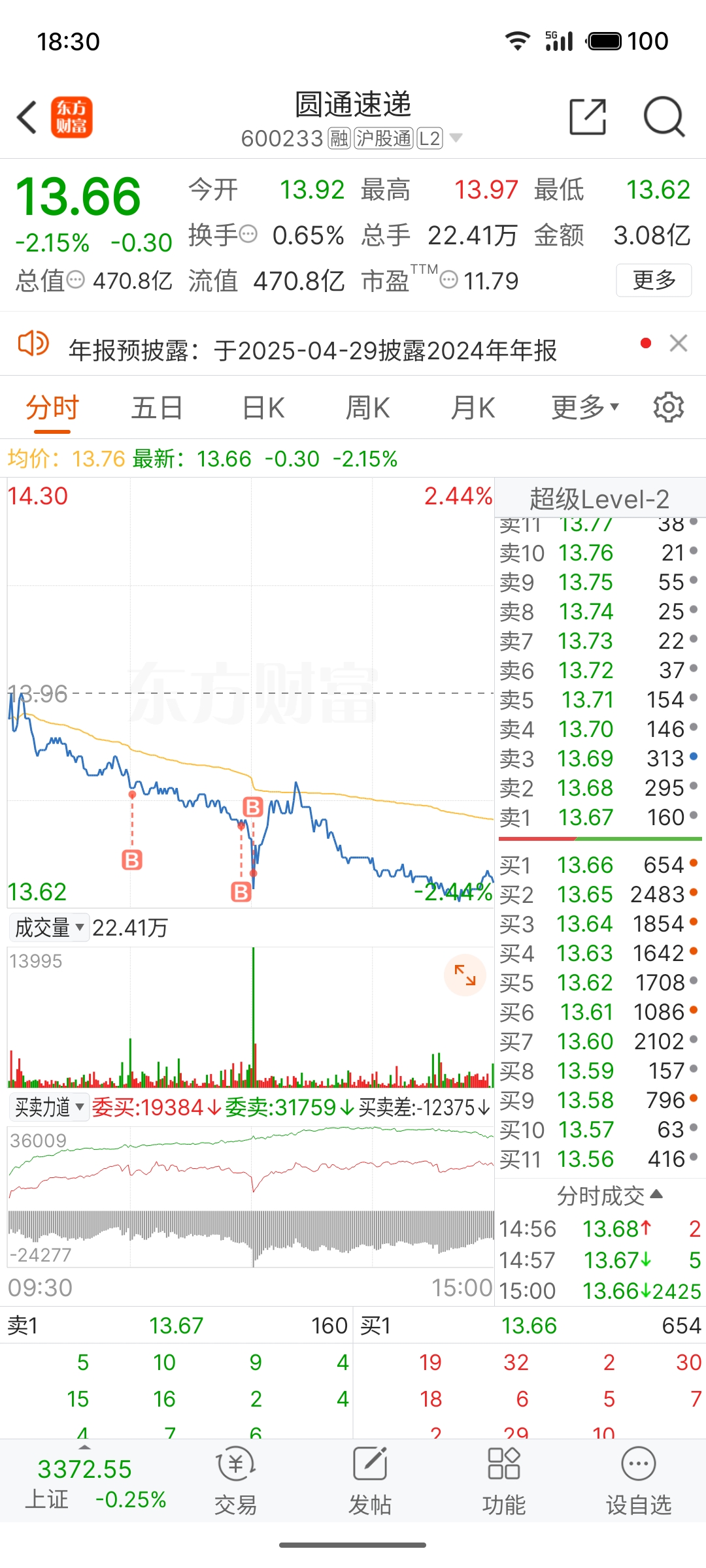 $圆通速递(SH600233)$ 希望下周一继续跌