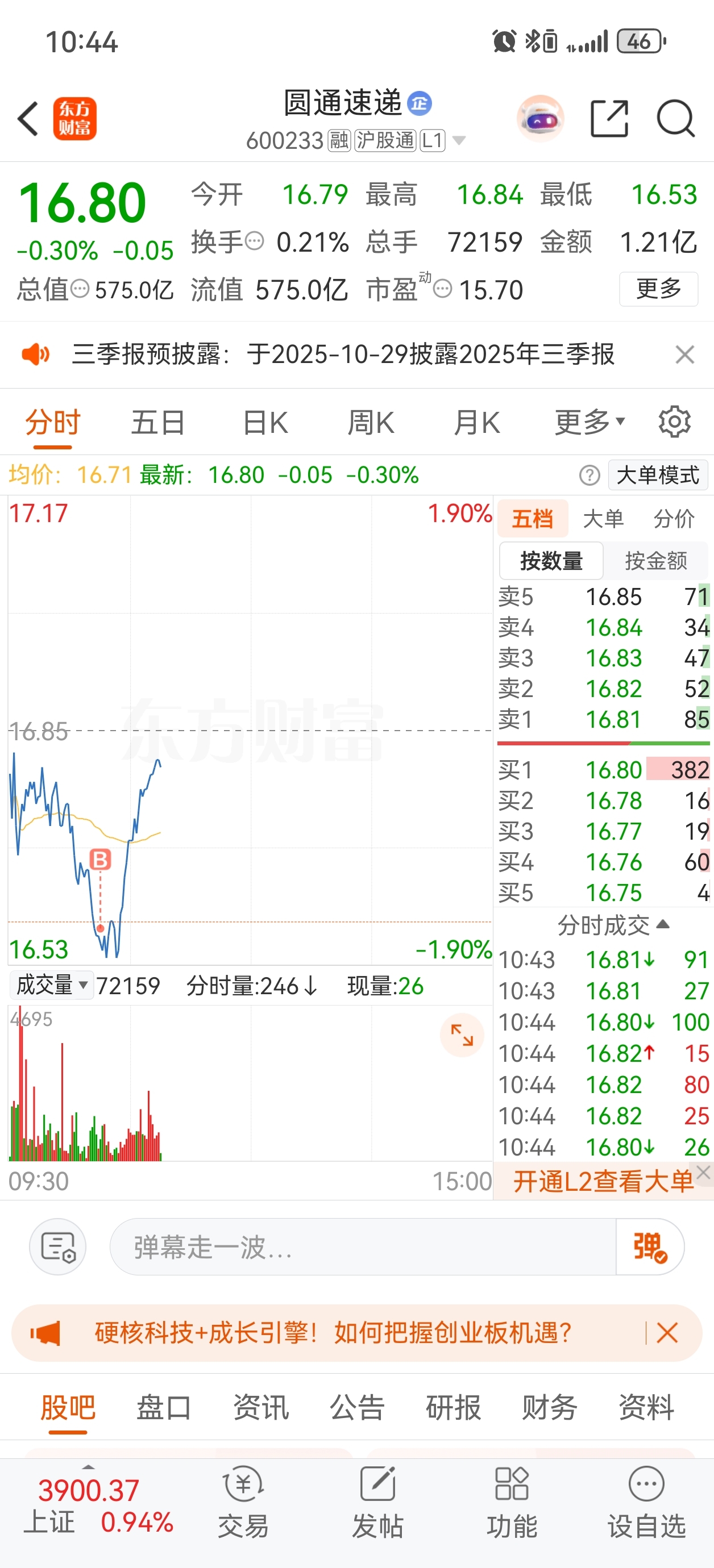 $圆通速递(SH600233)$ 不晓得进来对不对