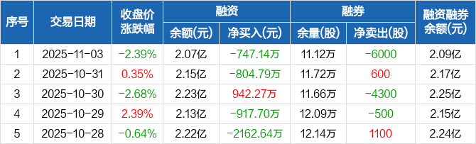 圆通速递:融资余额2.07亿元,创近一年新低(11-03)