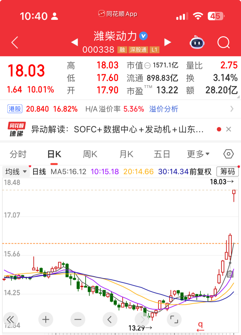 $圆通速递(SH600233)$ 昨天进的潍柴,到今天已经有12个点盈利了,这个僵尸股圆通真没必要去坚守。