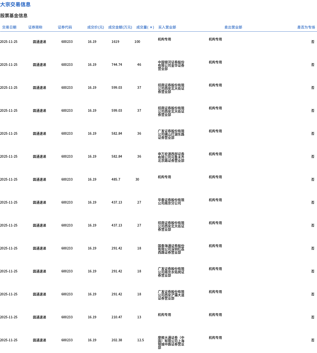 圆通速递今日大宗交易折价成交455.5万股,成交额7374.55万元