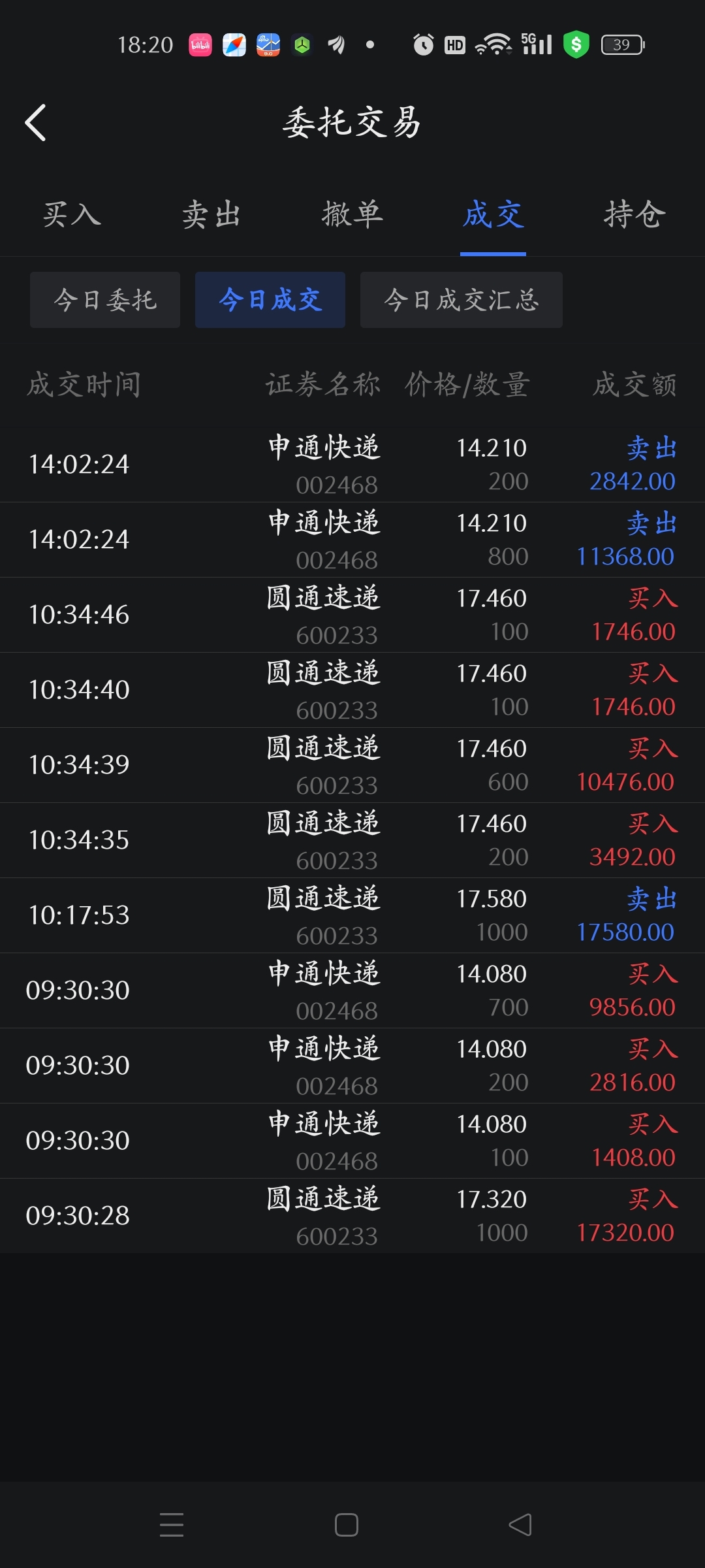 $圆通速递(SH600233)$ 开盘各进了一千股申通与圆通,申通搞了一个点,圆通1.5%。中途再进回圆通。