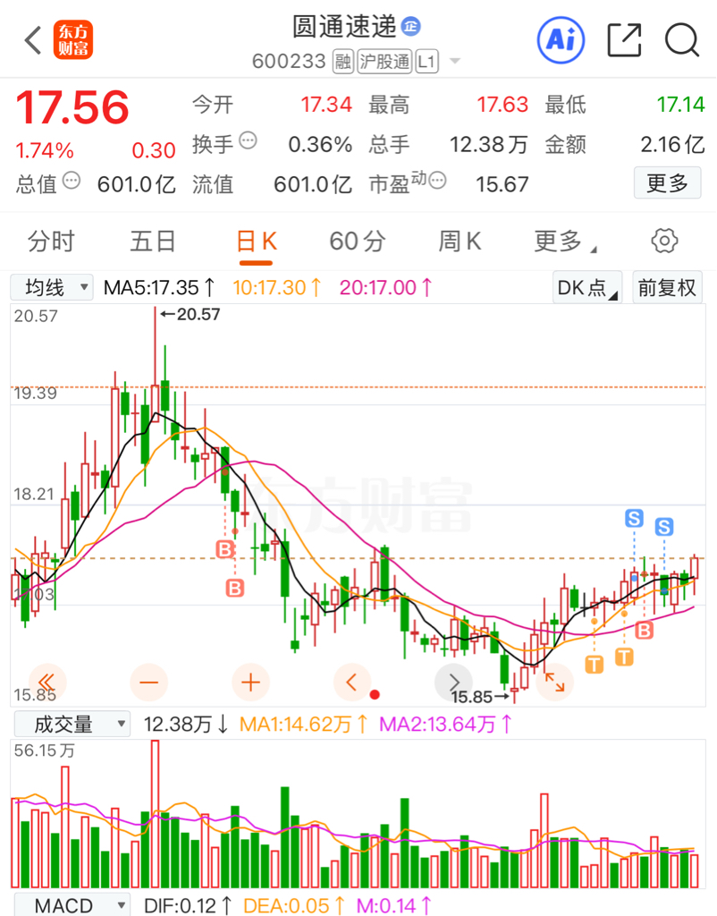 $圆通速递(SH600233)$ 我不同意涨,我割了你起来了