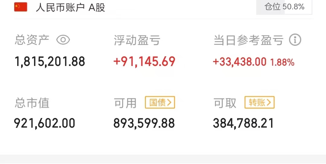 踏准上升趋势行情,两个月倍增计划第一天。今天小幅盈利。朋友们关注点起来,留意欧阳文章。欧阳会在盘中分享交易心得和机会票,同步的朋友评论区互相交流