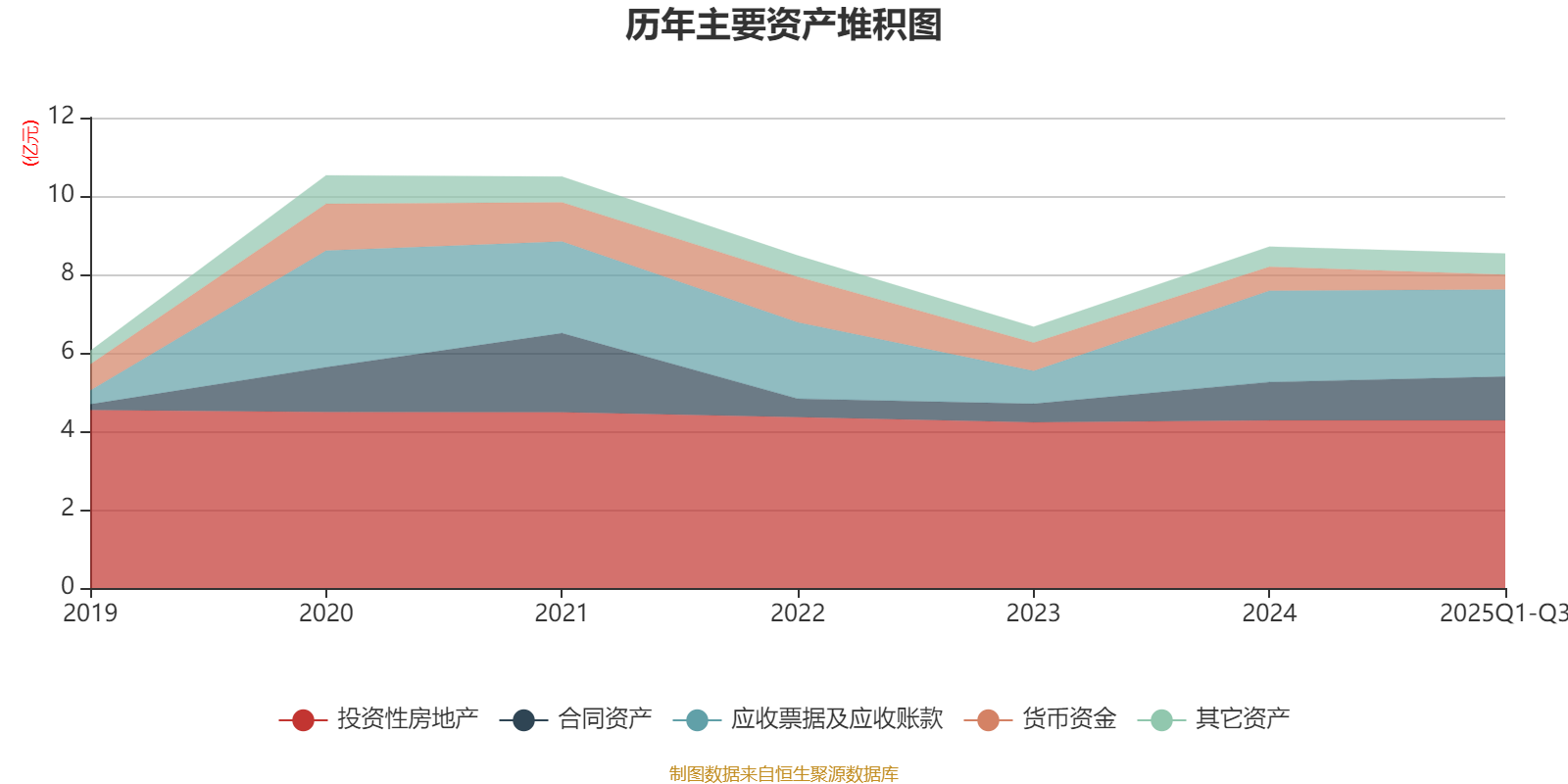 资产重大变化方面,截至2025年三季度末,公司货币资金较上年末减少37.53%,占公司总资产比重下降2.54个百分点;合同资产较上年末增加14.2%,占公司总资产比重上升1.86个百分点;投资性房地产较上年末没有变化,占公司总资产比重上升1.01个百分点;交易性金融资产合计占公司总资产的0.94%,上年末为0。