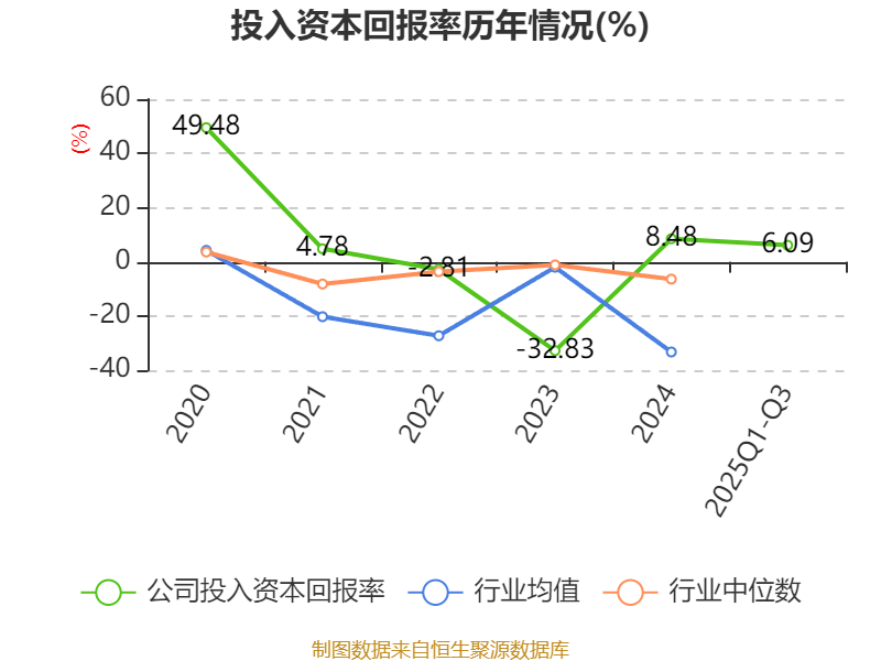 盈利能力方面, 2025年前三季度公司加权平均净资产收益率为6.49%,同比上升3.85个百分点。公司2025年前三季度投入资本回报率为6.09%,较上年同期上升3.52个百分点。