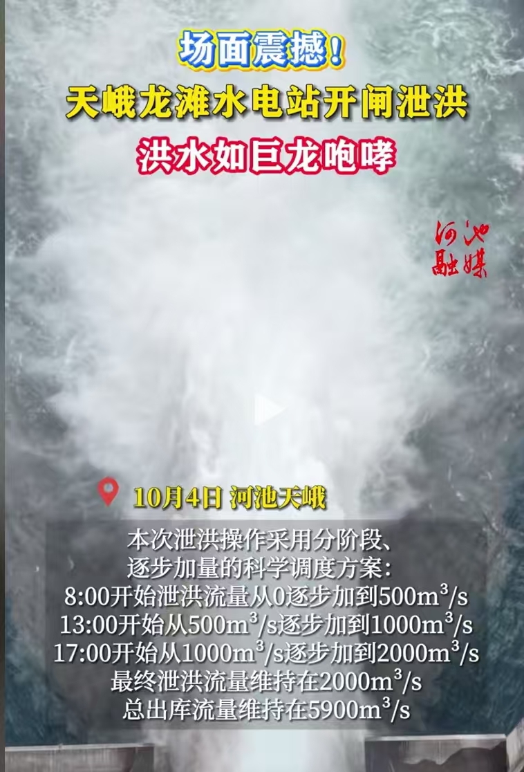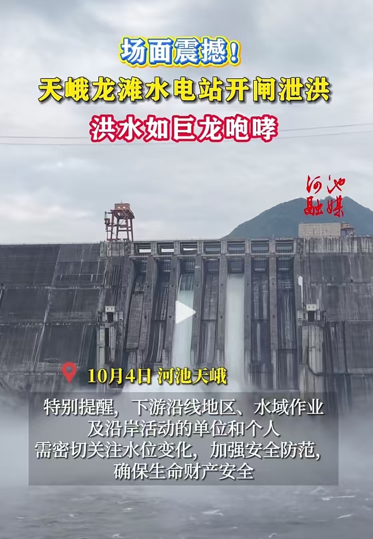 时隔8年,龙滩水电站再次水多,开闸泄洪,流的白花花的人民币啊,发电量大增,股票能