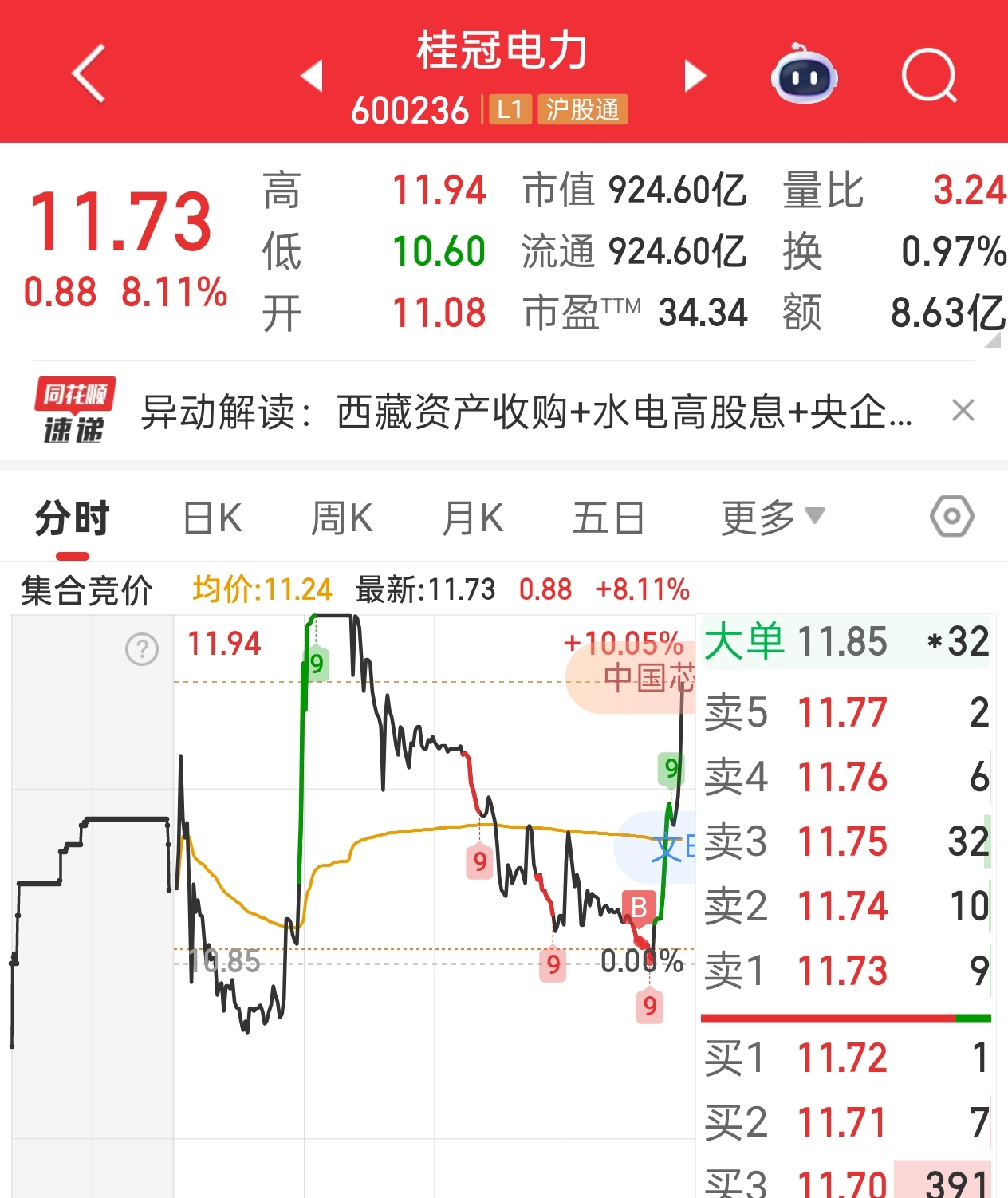 $桂冠电力(SH600236)$ 这,买完就拉,我就想明天套个利