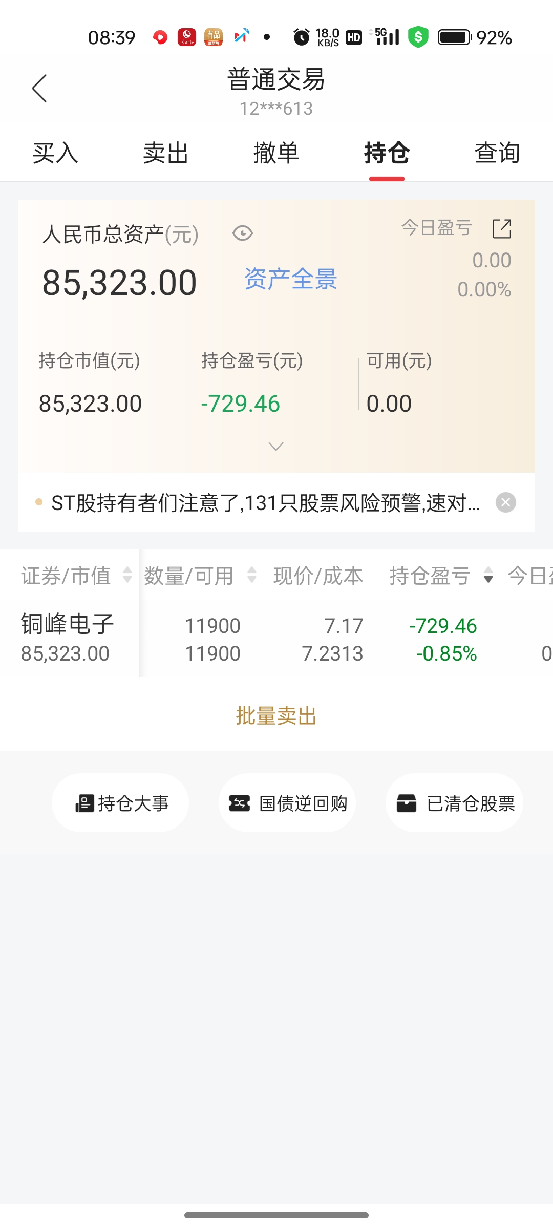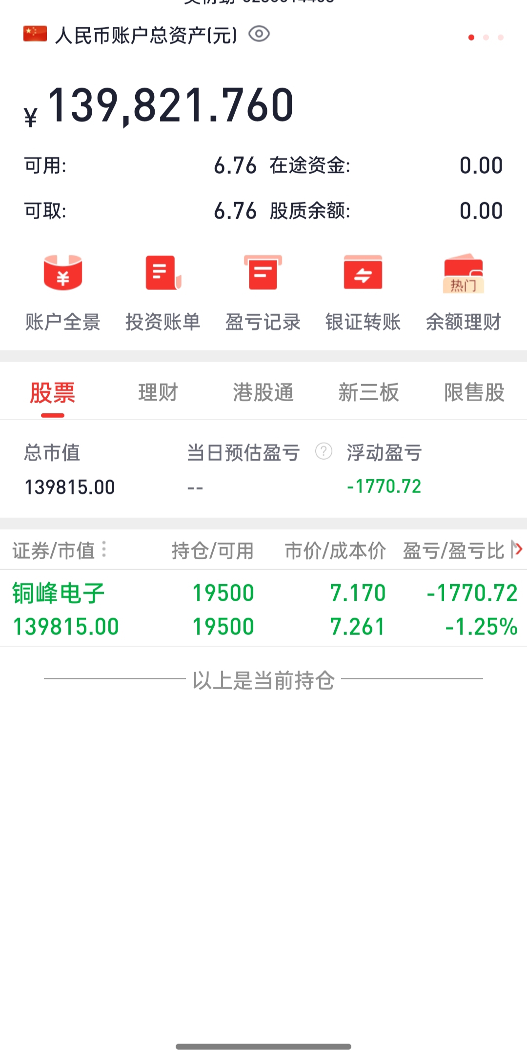 $铜峰电子(SH600237)$ 两个帐号满仓铜锋电子,