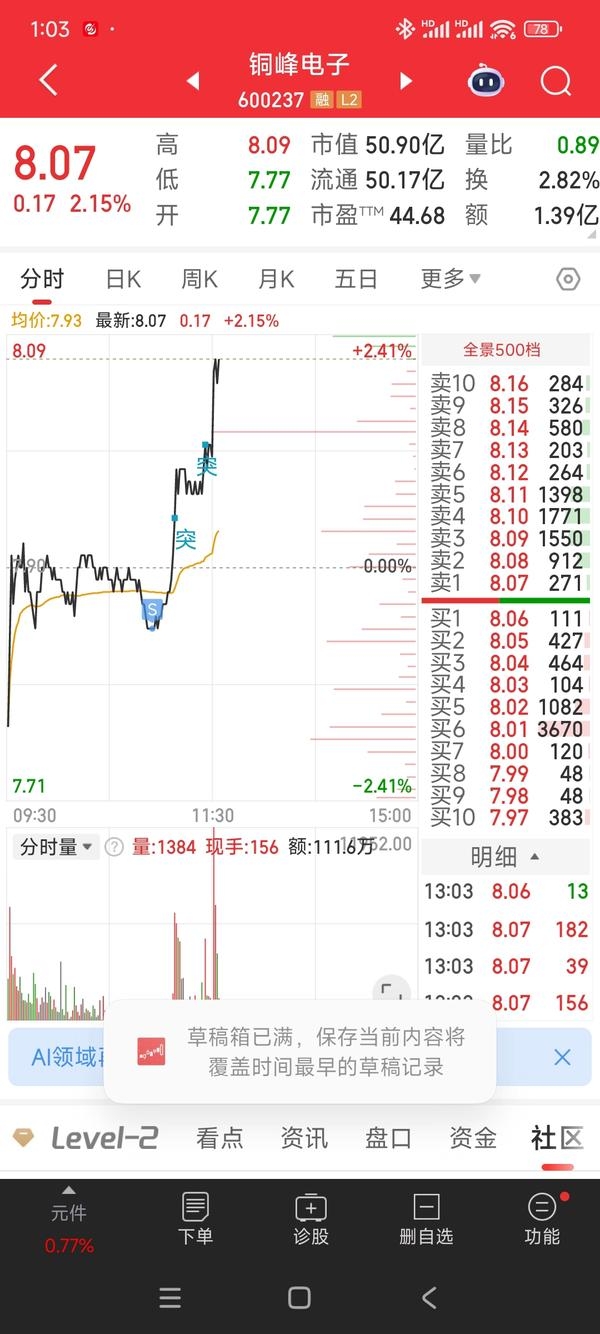 $铜峰电子(SH600237)$ 被监控了