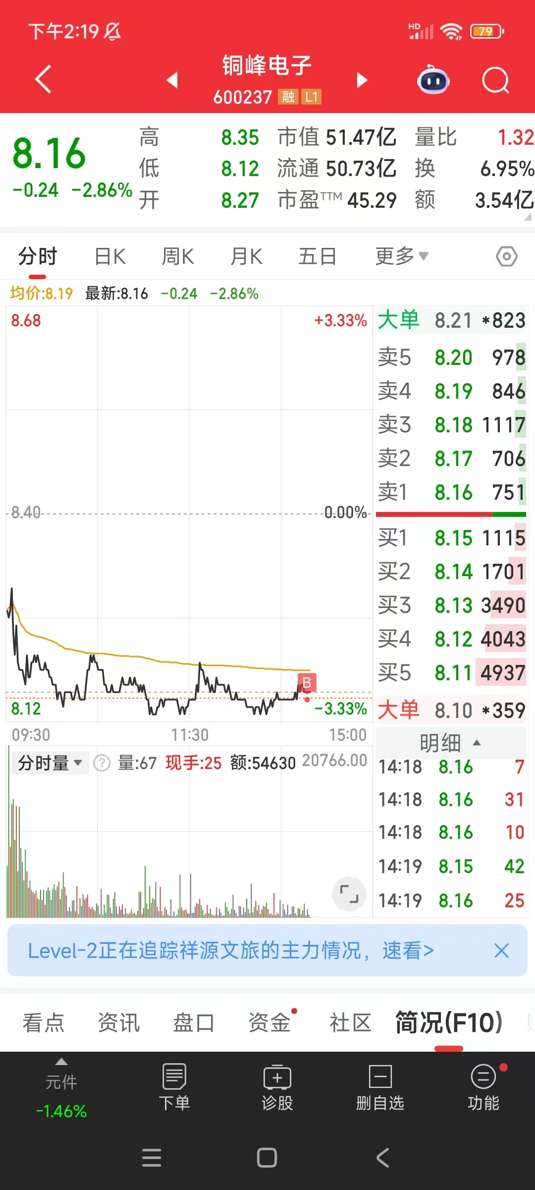 $铜峰电子(SH600237)$ 8.15买两成仓