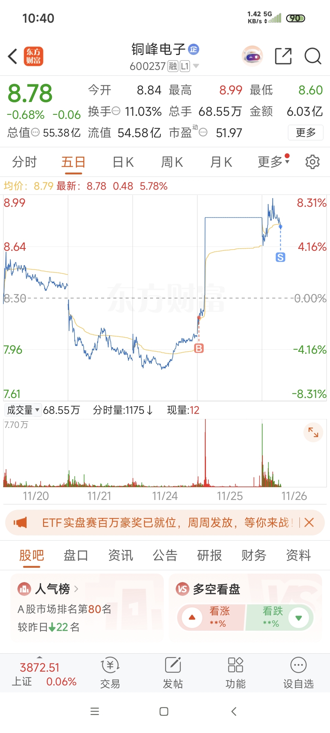 $铜峰电子(SH600237)$ 赚钱了怎么卖都是对的,亏钱了怎么卖都是错!告辞!
