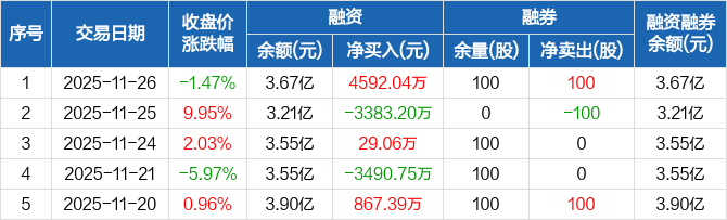 铜峰电子:融资净买入4592.04万元,融资余额3.67亿元(11-26)