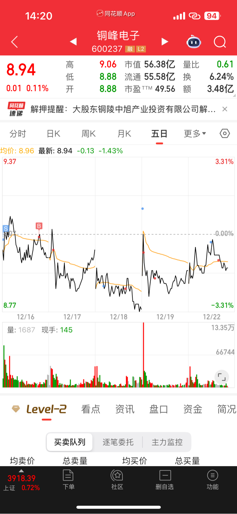 $铜峰电子(SH600237)$ 天天交印花税,天天sb