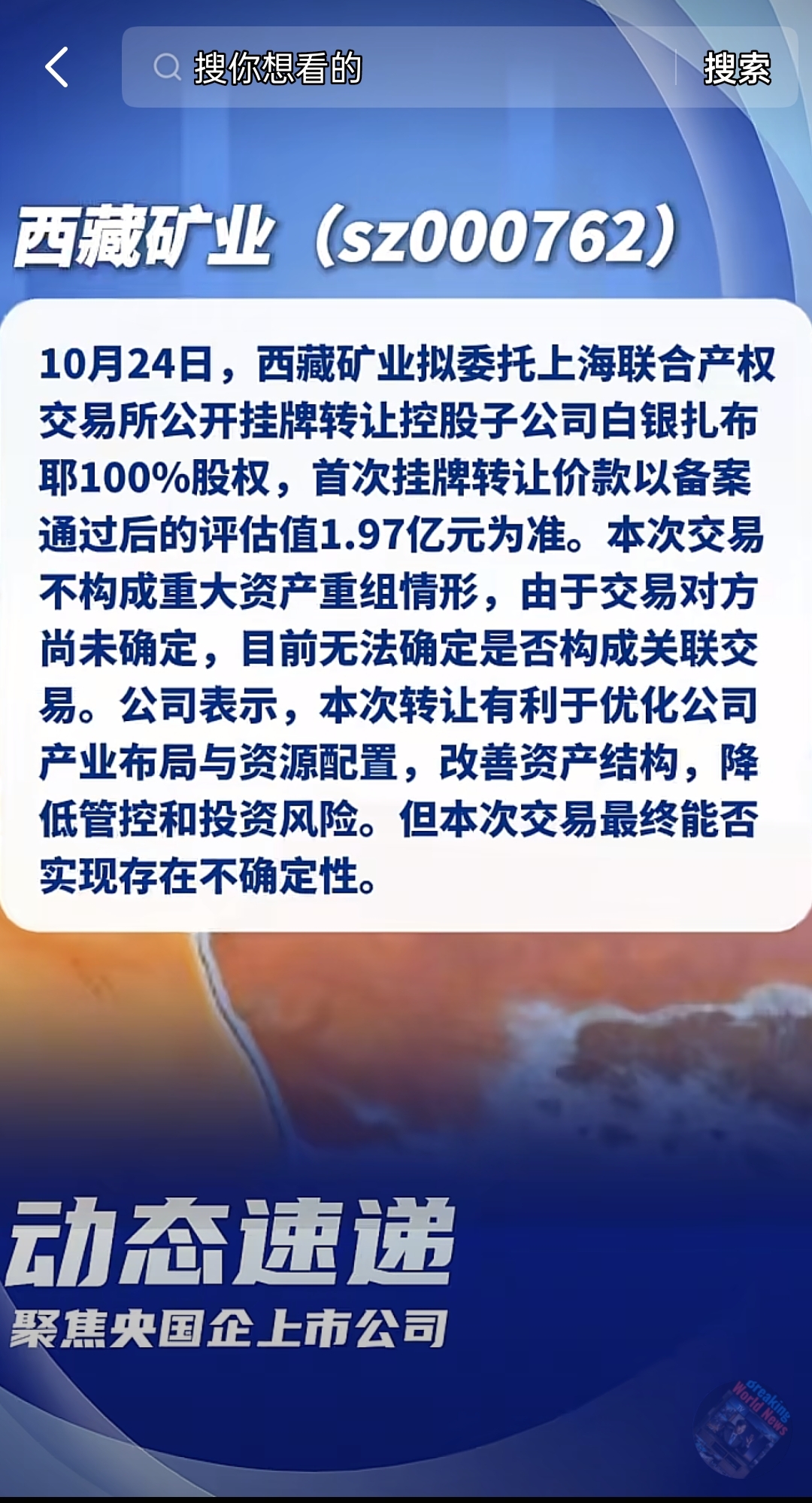 转让个子公司而已,大惊小怪,西藏以前也是这样,后面还有一波涨