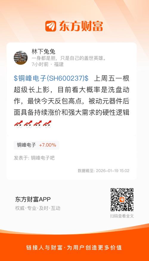 $铜峰电子(SH600237)$ 上周五一根超级长上影,目前看大概率是洗盘动作,最快今天反包高点,被动元器件后面具备持续涨价和强大需求的硬性逻辑