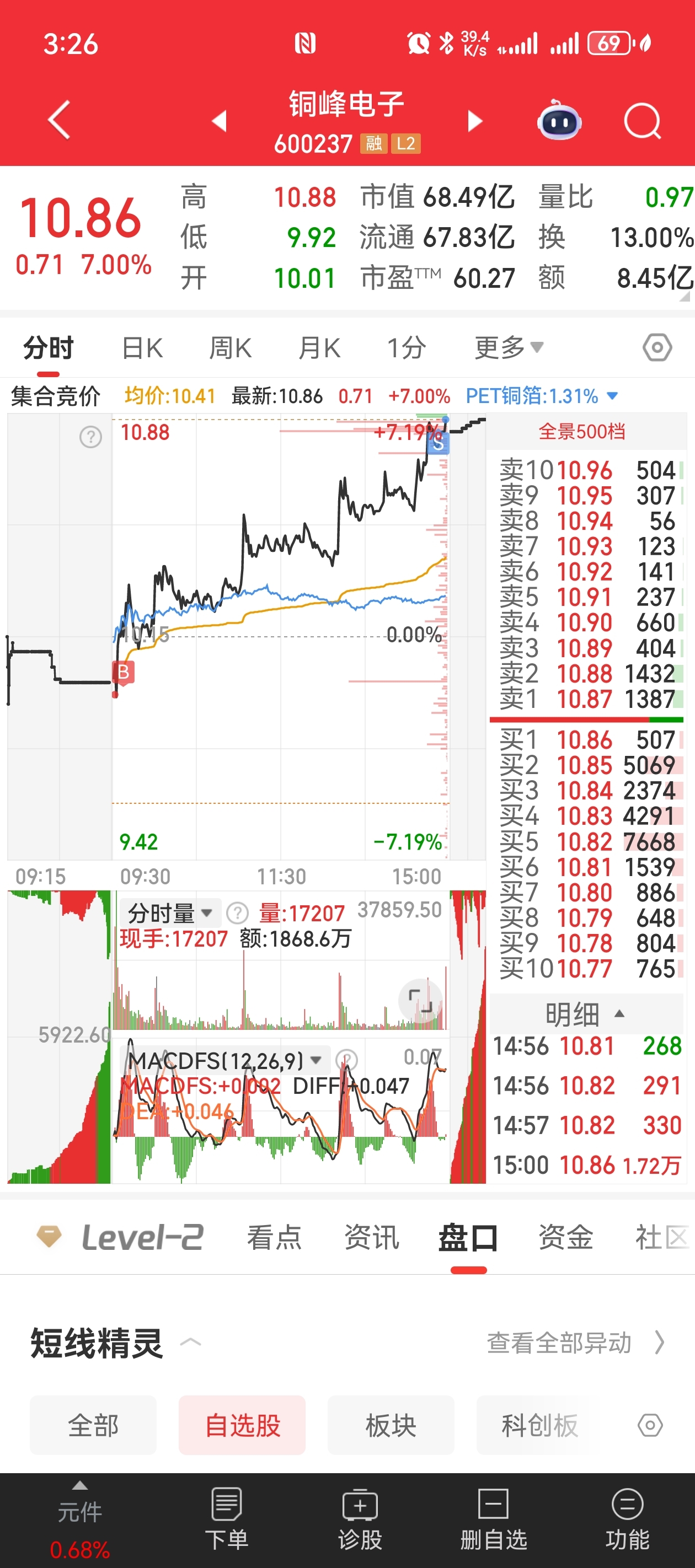 $铜峰电子(SH600237)$ 姐妹们今天操作只能说是完美 吃肉