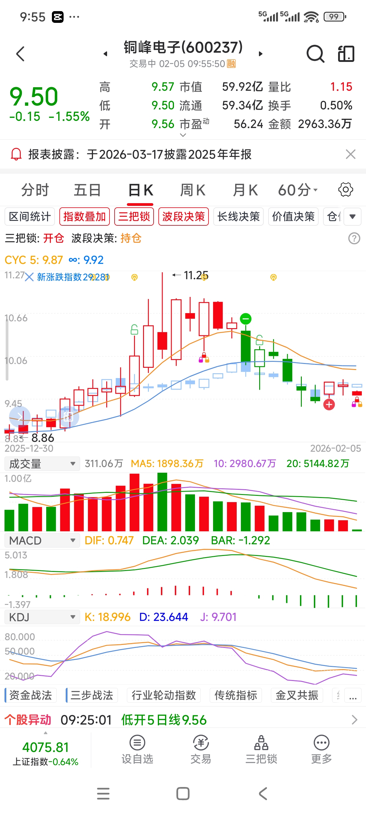 $铜峰电子(SH600237)$ 昨天买入信号出现又消失,今天买入信号再次出现,大胆买入!