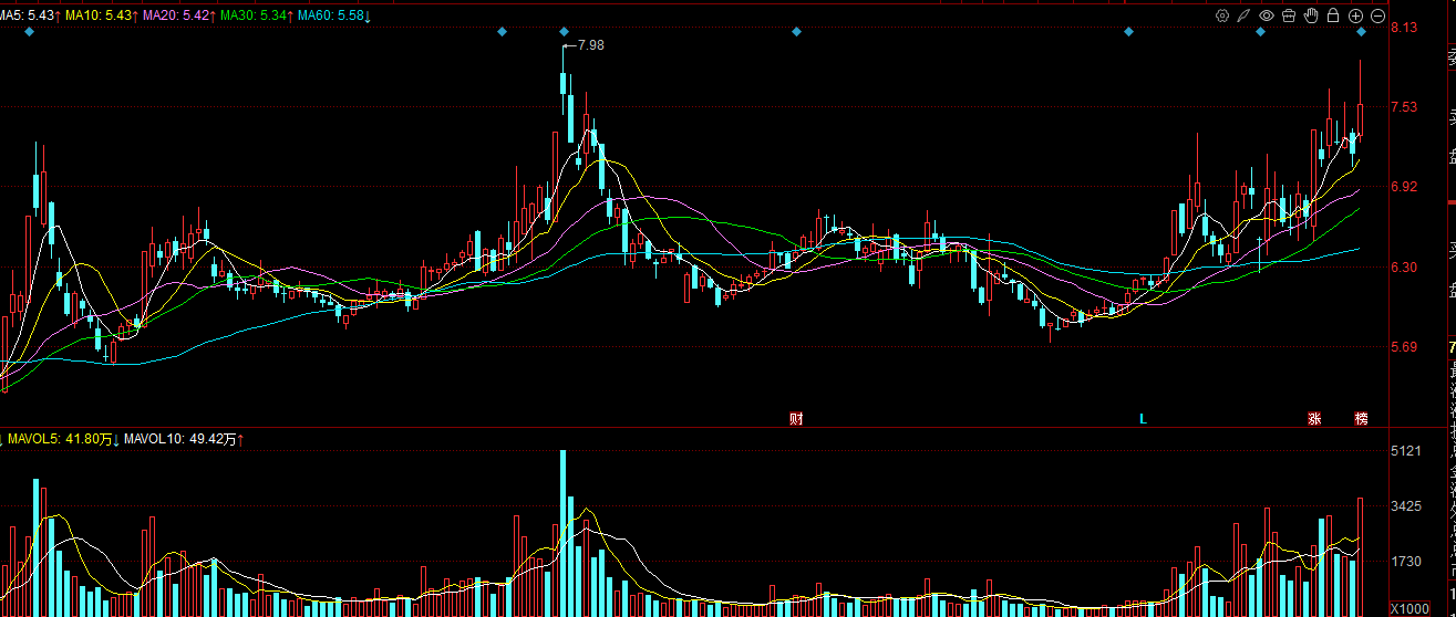 二六三002467:公司是AI数字概念股,上周五冲高回落,在盘中一度涨停,虽然没有封住涨停,但是成交量还是在明显的放量,现在均线也是标准的多头,整体的趋势仍然还是向上的,成交量也是比较配合,今天还是高开的预期,高开之后市场中有接力还是有望继续冲高来阳线的,前期的压力位在7.98附近,能放量还是有望突破上去的。从技术面来看,现在还是在圆弧底的上升通道之中,可以期待一下,要往下调整的空间也是有限,回踩下来如果在水下能有较好的接力,还是有望继续冲高的,短线就是需要顺势而为。