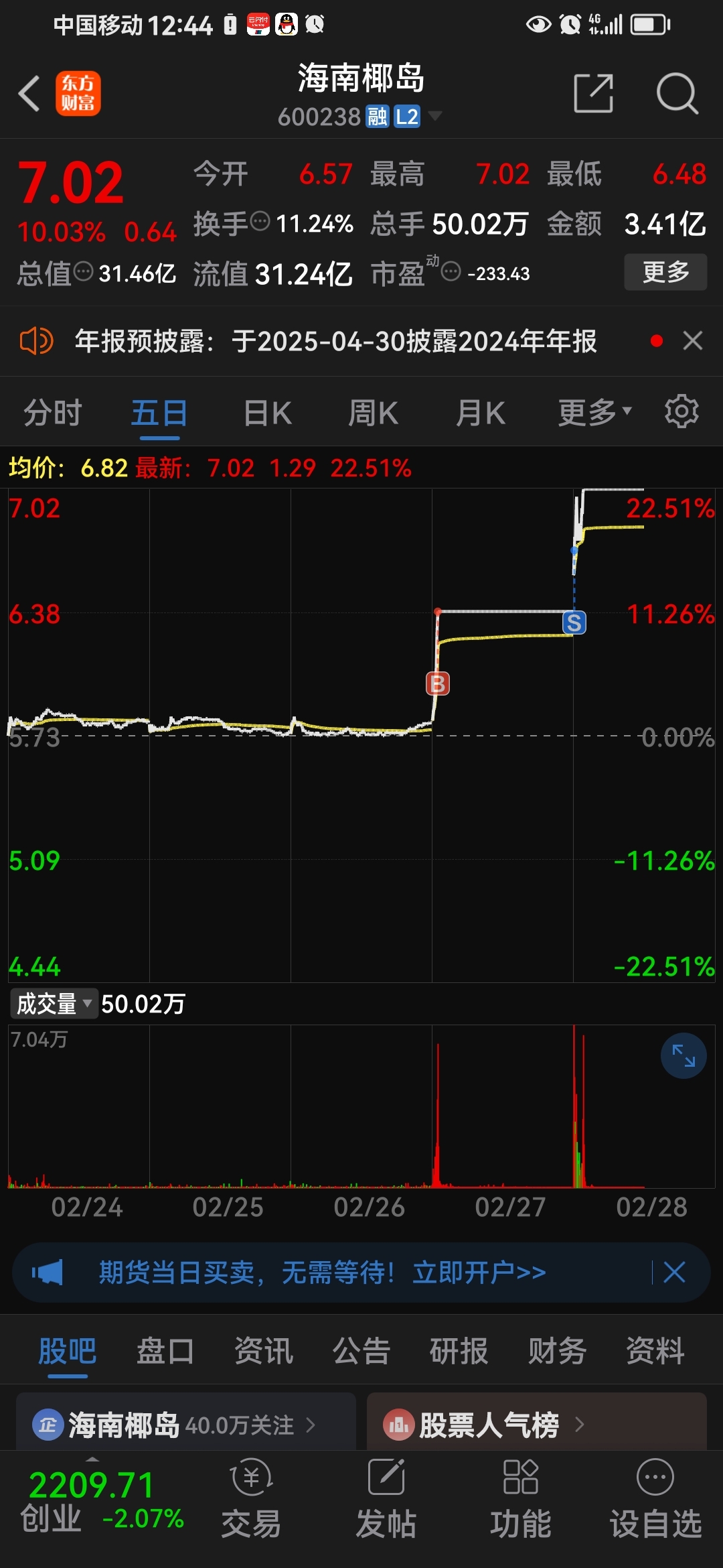 今天的量价漂亮,开盘看见海南板块都不如意,几个涨停板都低开,就椰岛高开,拉升中卖