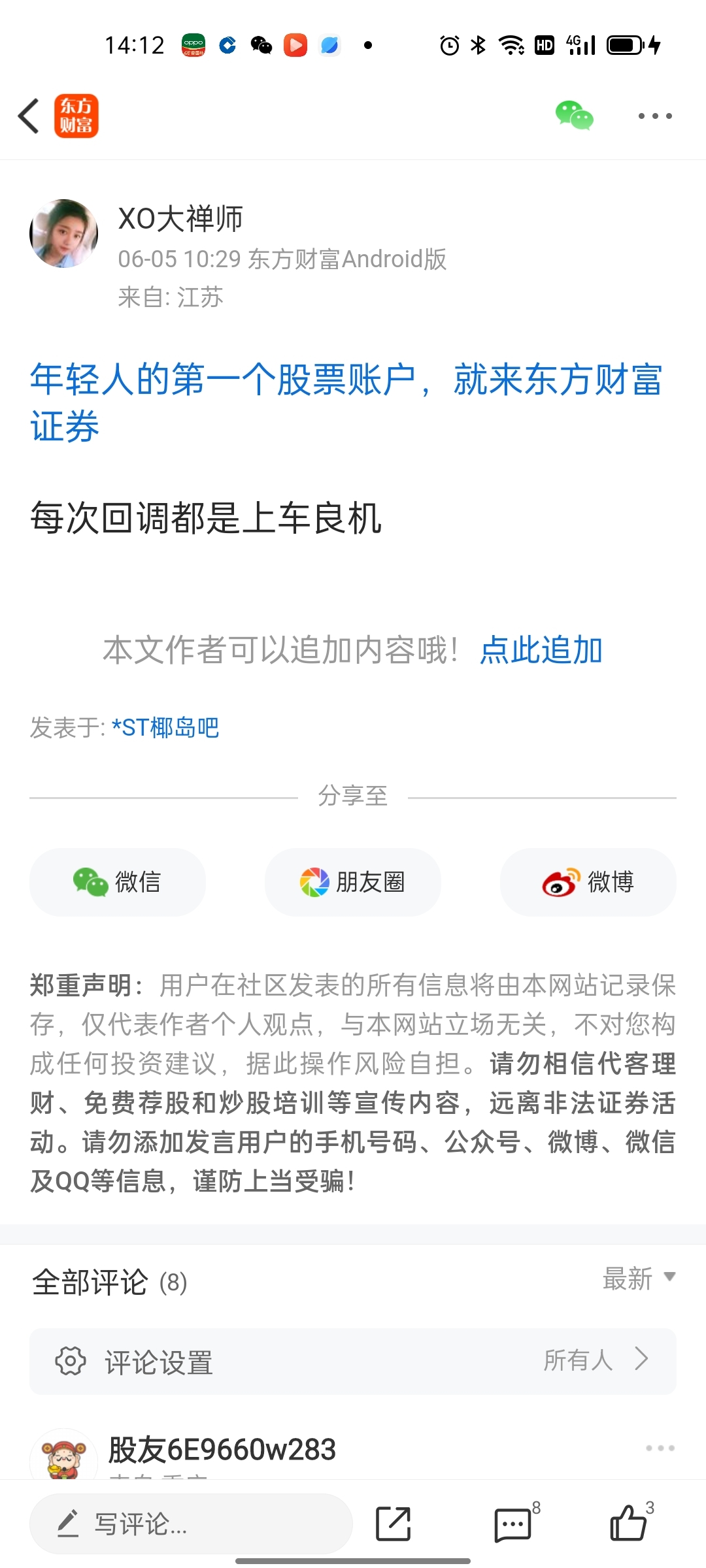 郑重声明:用户在财富号/股吧/博客等社区发表的所有信息(包括但不限于文字、视频、音频、数据及图表)仅代表个人观点,与本网站立场无关,不对您构成任何投资建议,据此操作风险自担。请勿相信代客理财、免费荐股和炒股培训等宣传内容,远离非法证券活动。请勿添加发言用户的手机号码、公众号、微博、微信及QQ等信息,谨防上当受骗!