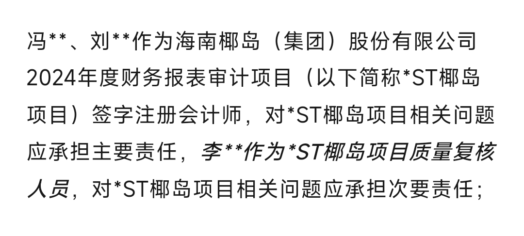 这三人是椰岛2025年年报聘请的审计,23号发布的通报,被通报之后这三人还能履行