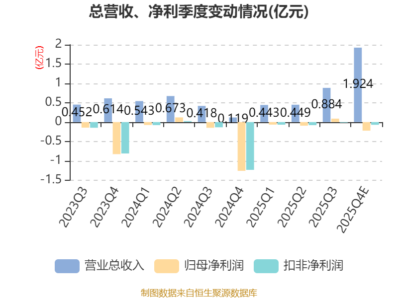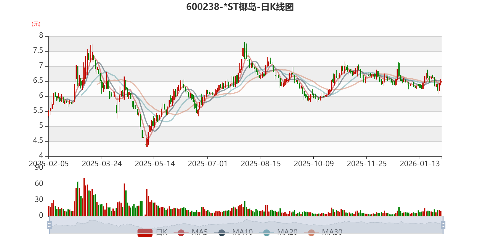 中证智能财讯 *ST椰岛(600238)1月30日晚间披露2025年度业绩预告,预计2025年实现营业收入3.7亿元;归母净利润亏损2900万元,上年同期亏损1.36亿元;扣非净利润亏损2300万元,上年同期亏损1.42亿元。以1月30日收盘价计算,*ST椰岛目前市盈率(TTM)约为-100.46倍,市净率(LF)约28.71倍,市销率(TTM)约7.87倍。