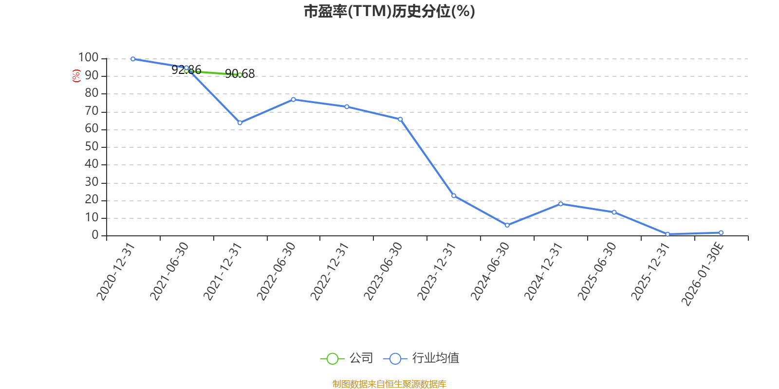 以本次披露业绩预告均值计算,公司近年市盈率(TTM)图如下所示: