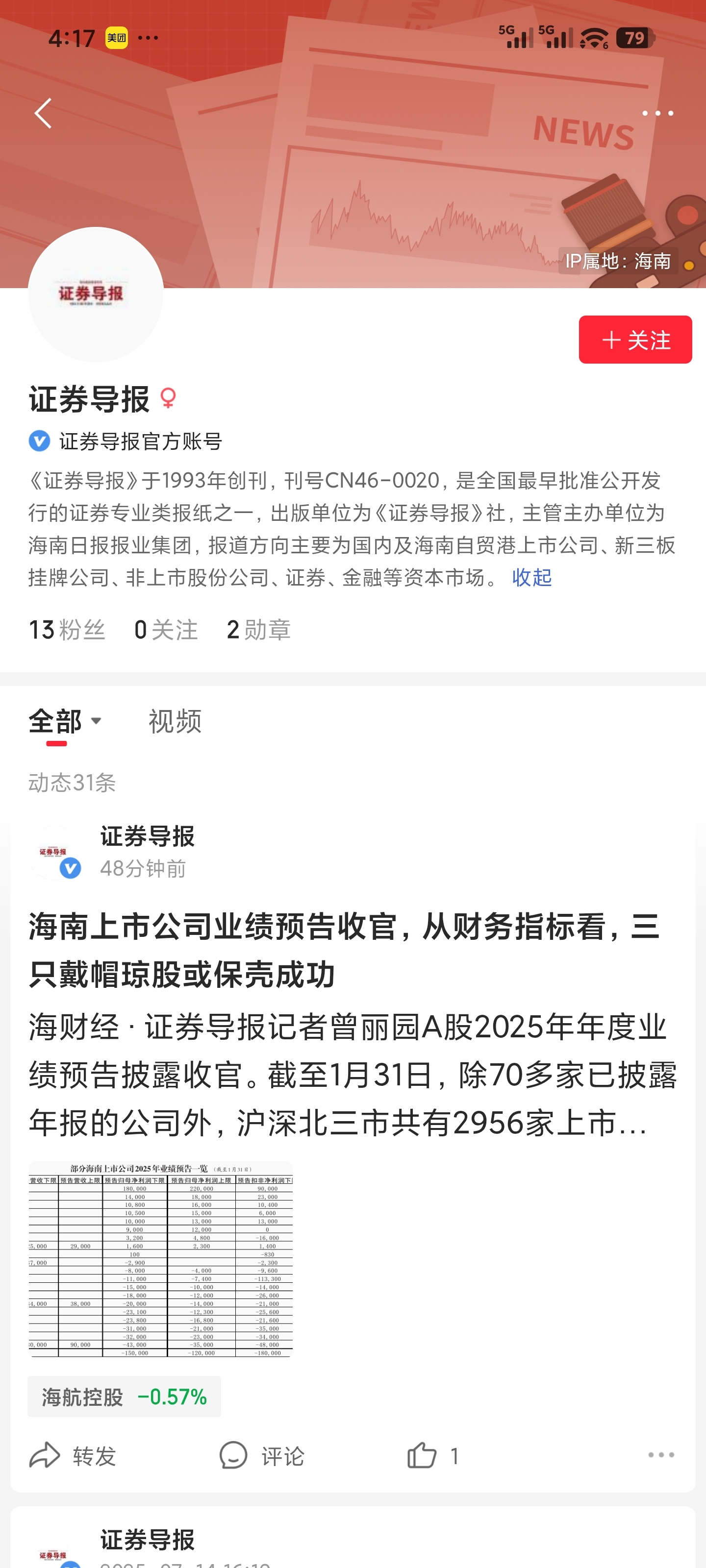 海南日报旗下的证券导报来给海南本地企业打广告了…