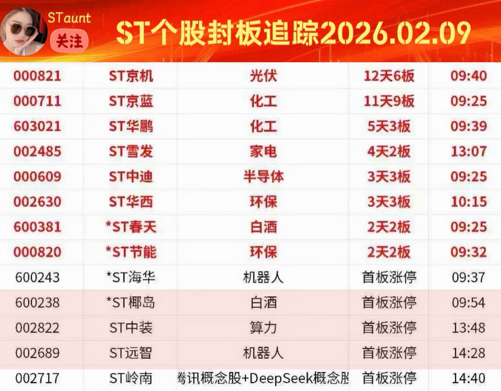 ST个股封板追踪D