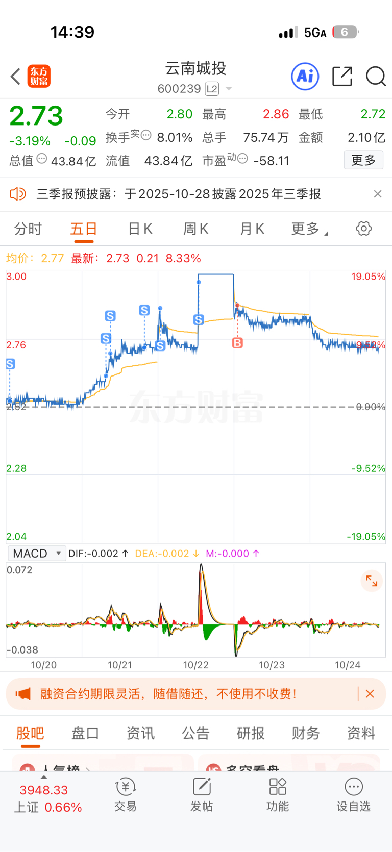 $云南城投(SH600239)$ 吐了点利润出来看到2.6再说吧