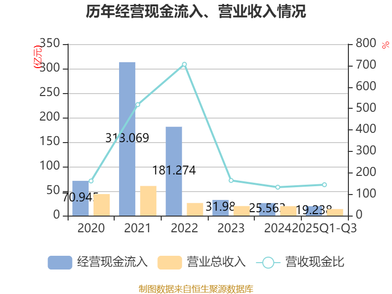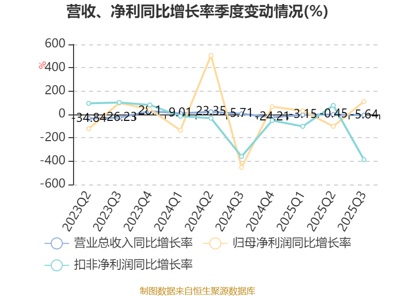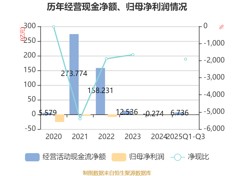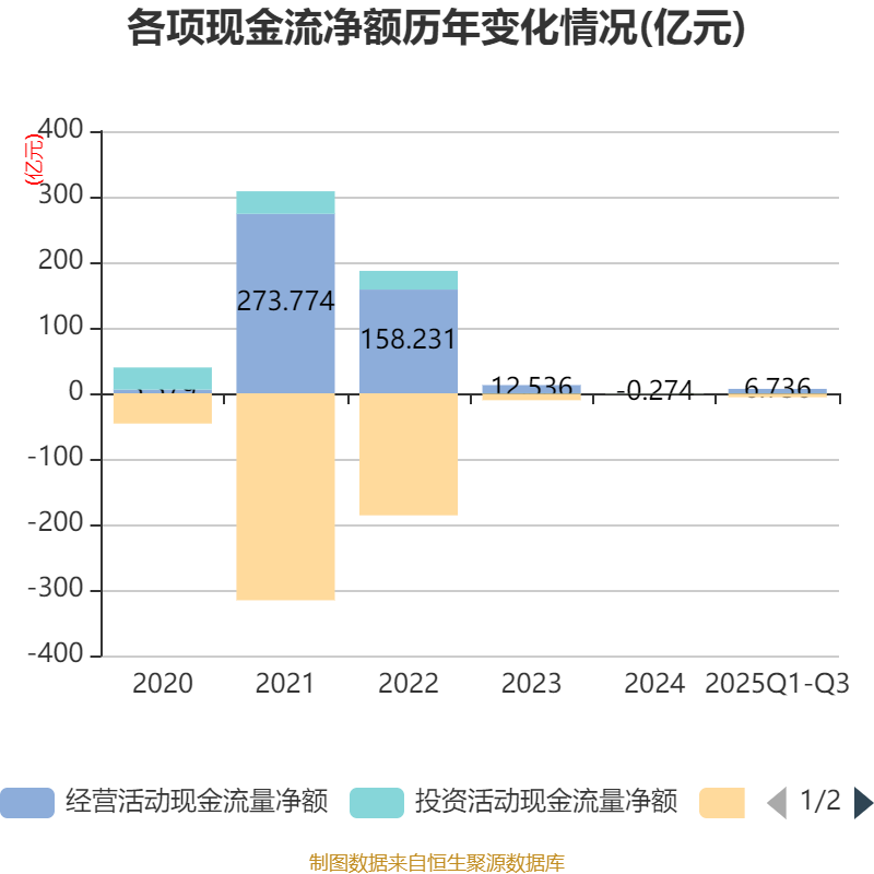 2025年前三季度,公司经营活动现金流净额为6.74亿元,同比增加9.23亿元;筹资活动现金流净额-5.38亿元,同比减少8.07亿元;投资活动现金流净额-6120.21万元,上年同期为1111.71万元。
