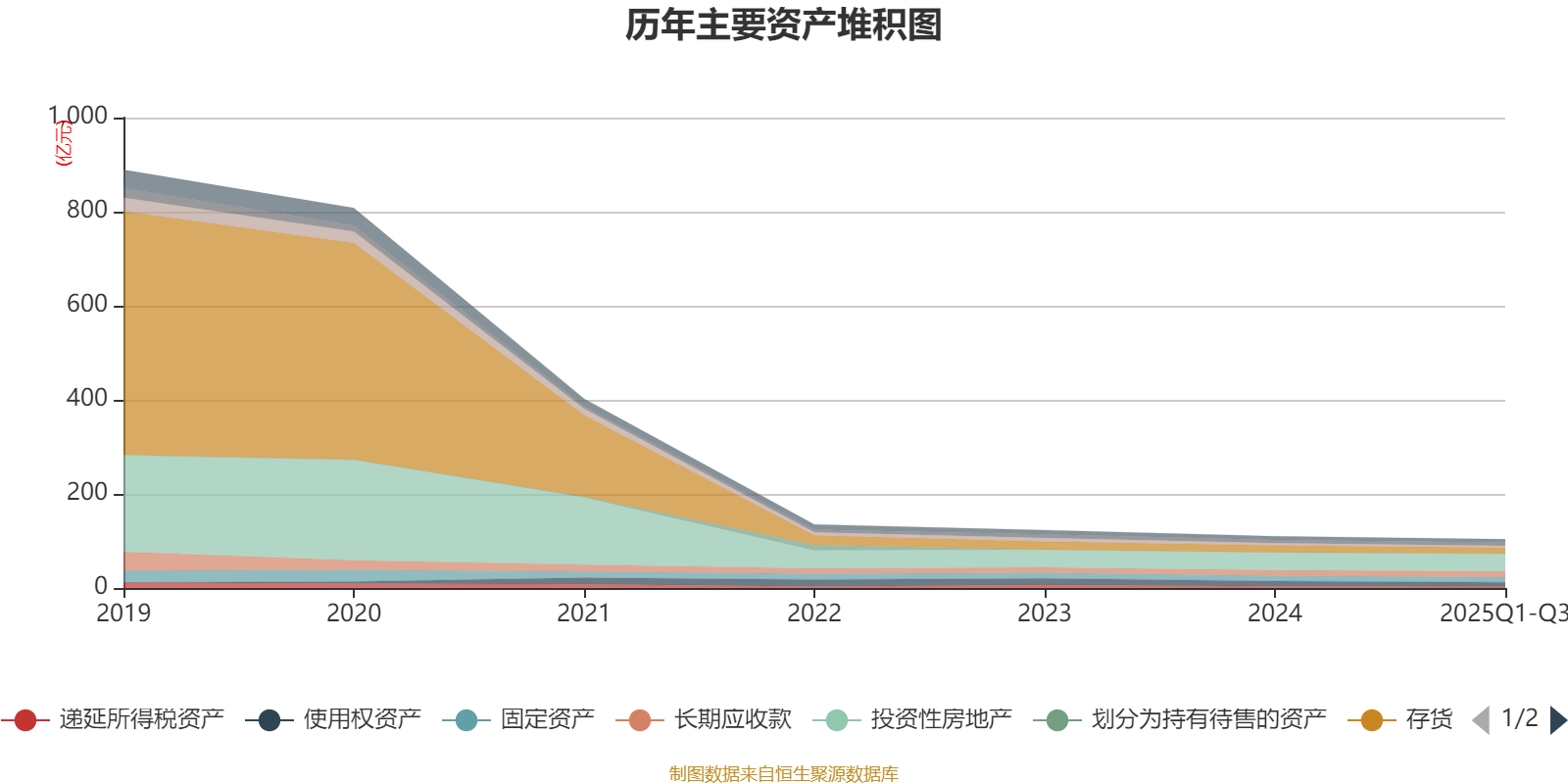 资产重大变化方面,截至2025年三季度末,公司投资性房地产较上年末没有变化,占公司总资产比重上升2.07个百分点;使用权资产较上年末减少16.57%,占公司总资产比重下降1.17个百分点;存货较上年末减少13.74%,占公司总资产比重下降1.15个百分点;货币资金较上年末增加10.64%,占公司总资产比重上升1.07个百分点。