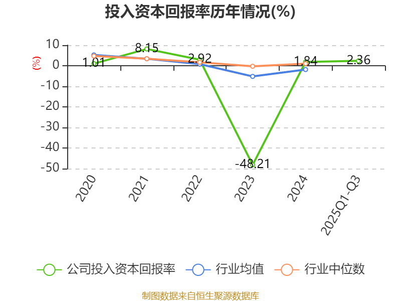 盈利能力方面, 2025年前三季度公司加权平均净资产收益率为-2.71%,同比下降4.02个百分点。公司2025年前三季度投入资本回报率为2.36%,较上年同期上升0.09个百分点。