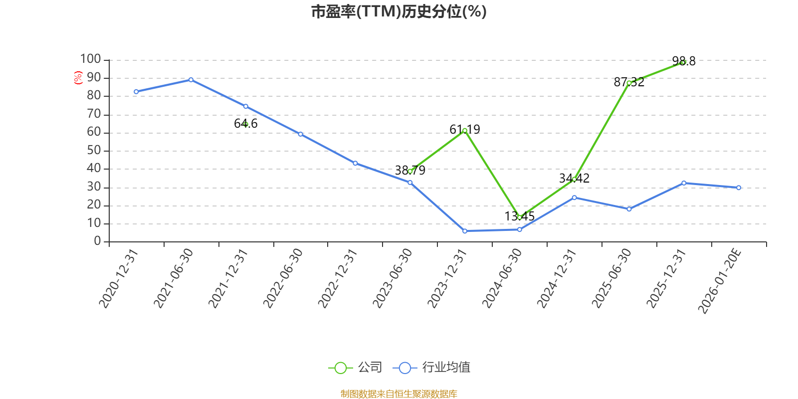 以本次披露业绩预告均值计算,公司近年市盈率(TTM)图如下所示: