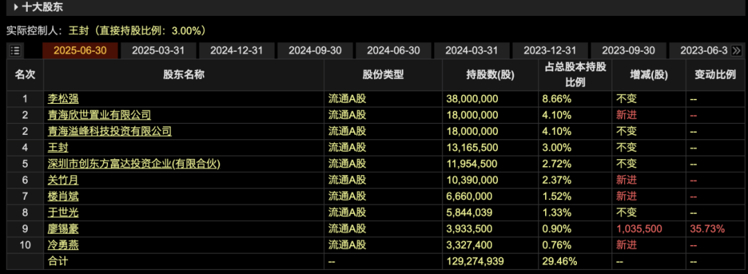 梳理发现,在此次筹划实控人变更之前,*ST海华的前十大股东榜已有异动。截至2025年半年报,公司共有4名新进股东。