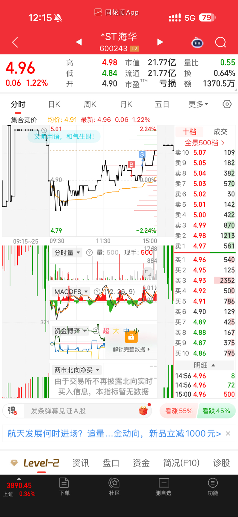 $*ST海华(SH600243)$ 上周尾盘已走,周一挂跌停进,拉一下