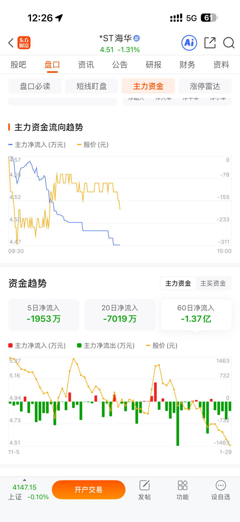 $*ST海华(SH600243)$ 主力早就跑了,看看60天,全是绿的,都是出的,基本没有资金进来,被做局了、弄个股权转让让你们不要跑,他们要跑。被坑了