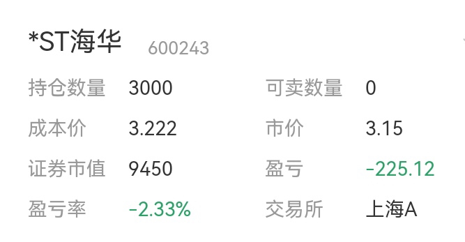 $*ST海华(SH600243)$ 我命休已,这个年怎么过啊!你到是快点涨啊。