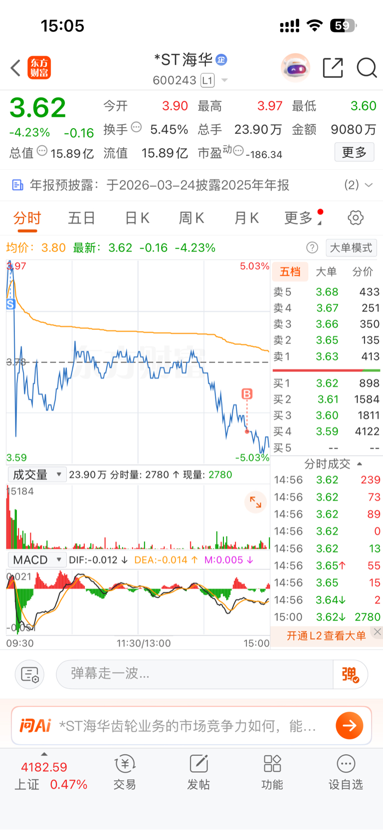 $*ST海华(SH600243)$ 本来都走了,好家伙又套进来了,收盘还能砸的啊