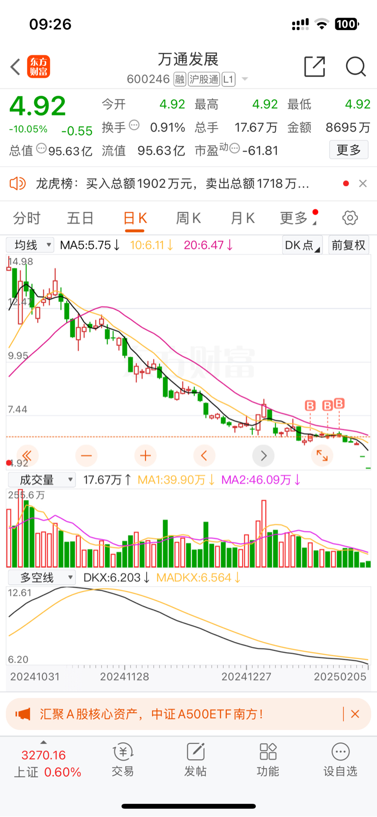 $万通发展(SH600246)$ 的,想炒个底,抄在山顶,跌停板割肉了