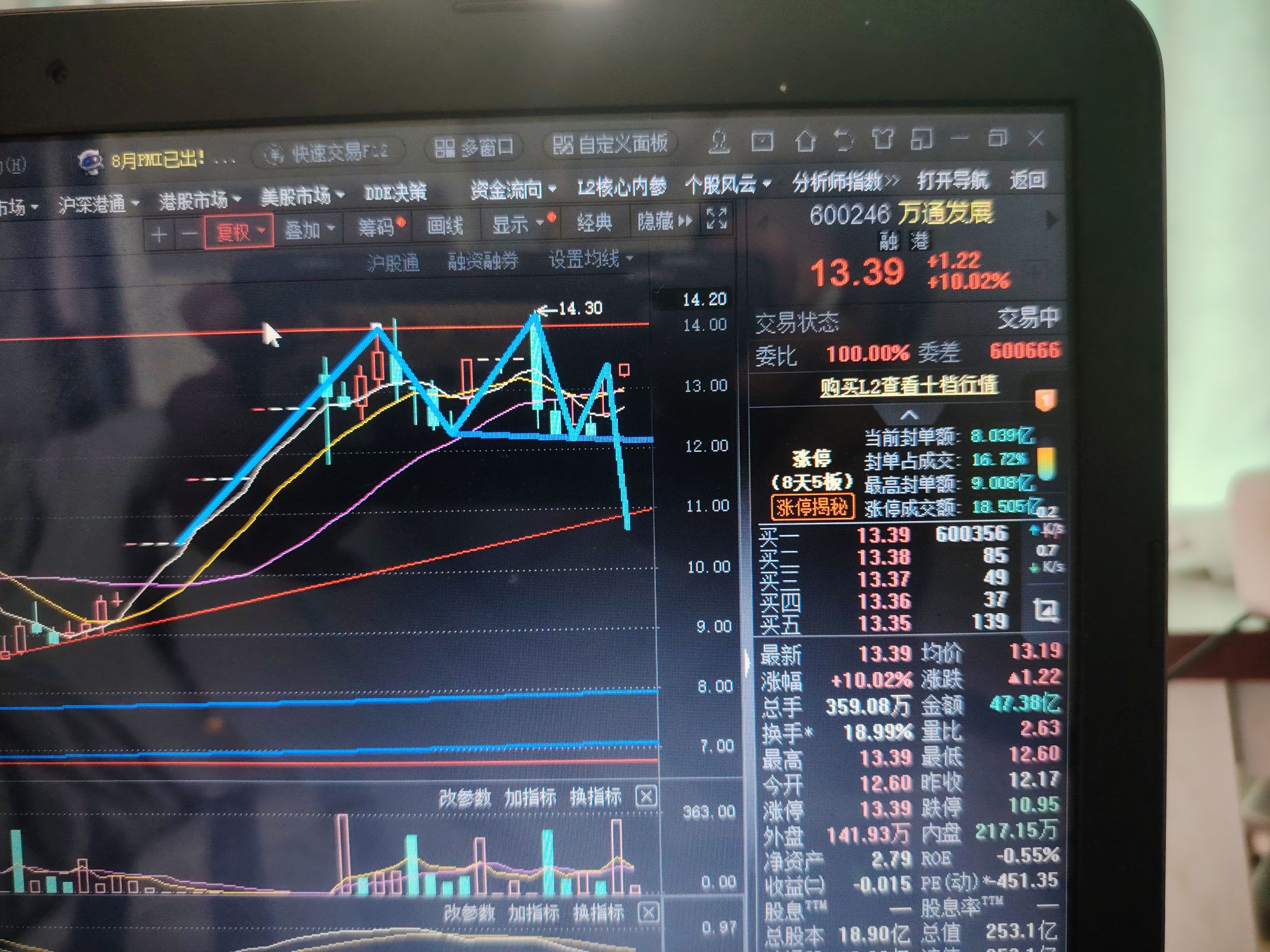 $万通发展(SH600246)$ 这个票排除走妖的前提下,个人把它看成12~14块区间震荡高抛低吸做T,30/60分钟级别走头肩顶形态。如果后续直接一字板走妖那就皆大欢喜